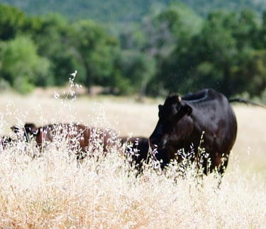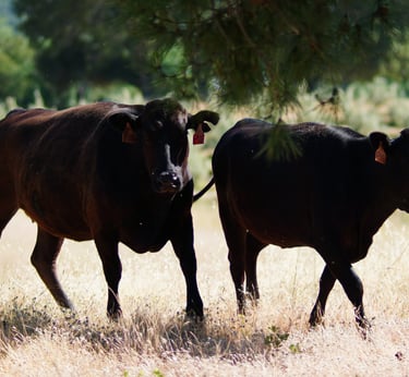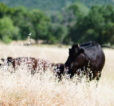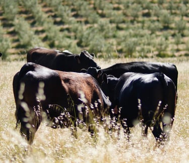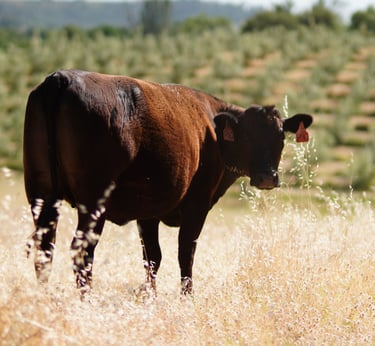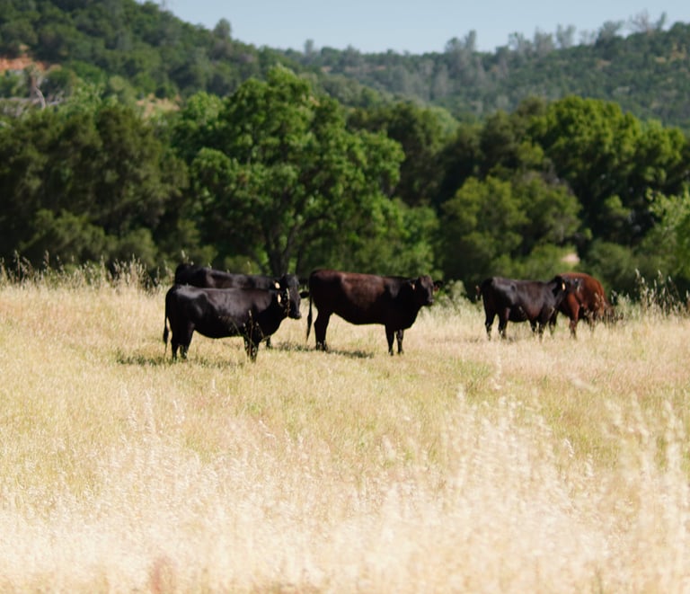 Our cattle roam freely across the sun-drenched, open pastures of Placer County—a region renowned for its fertile terroir and pristine landscapes. Raised with care, they thrive on a natural, non-GMO diet, enriched by nutrient-dense olives from our local groves, ensuring the highest quality and purity in every product.